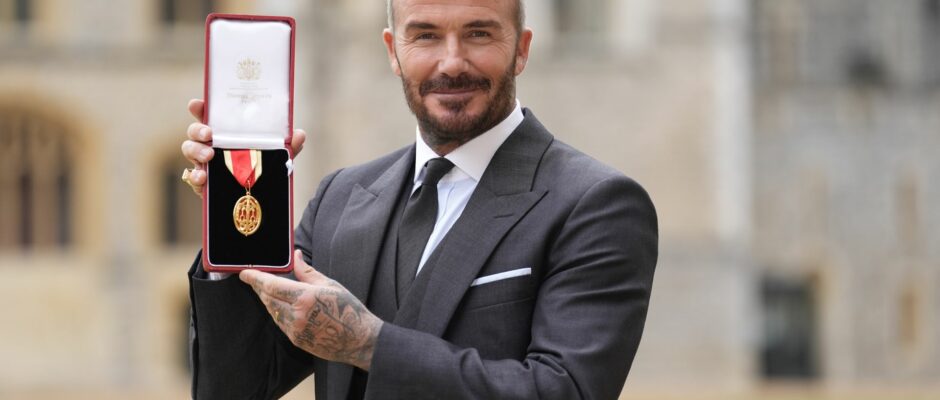 David Beckham has been knighted by King Charles at Windsor Castle for services to sport and charity.