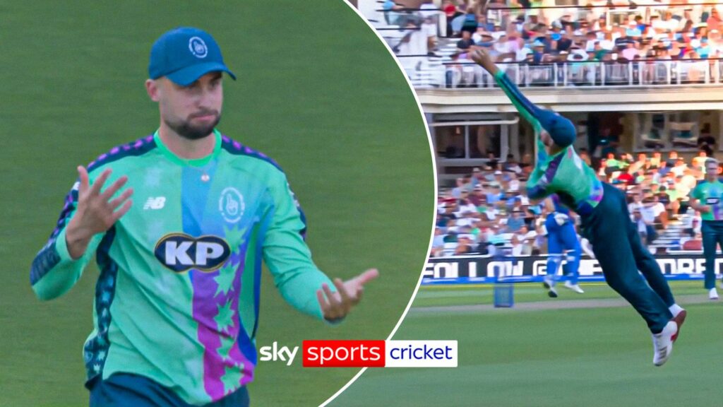 Oval Invincibles’ Will Jacks takes an absolute screamer of a catch to dismiss London Spirit’s Ollie Pope.