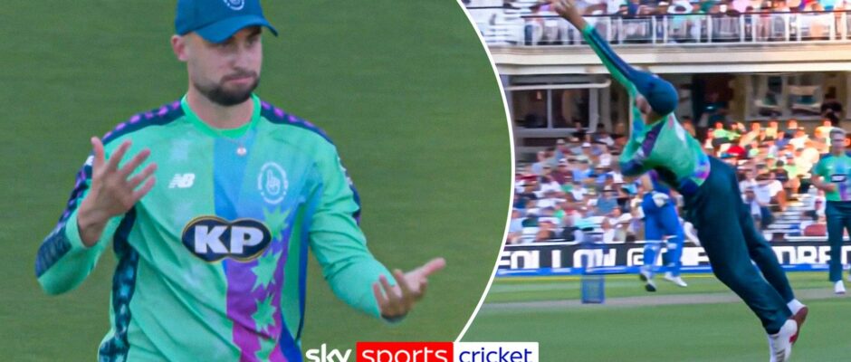 Oval Invincibles’ Will Jacks takes an absolute screamer of a catch to dismiss London Spirit’s Ollie Pope.
