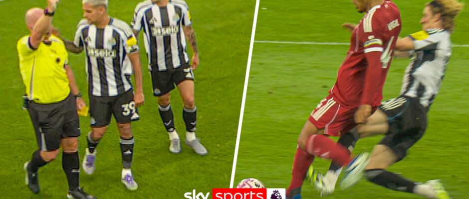 Anthony Gordon was sent off for a ‘wild’ tackle on Virgil van Dijk in Newcastle’s Premier League clash with Liverpool.