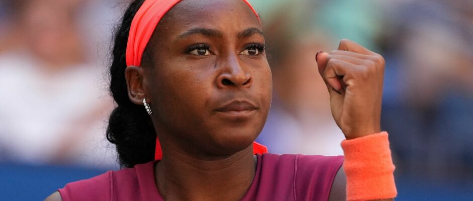 Coco Gauff shrugged off the service problems that haunted her earlier in the week to storm past Magdalena Frech and reach the fourth round of the US Open on Saturday.