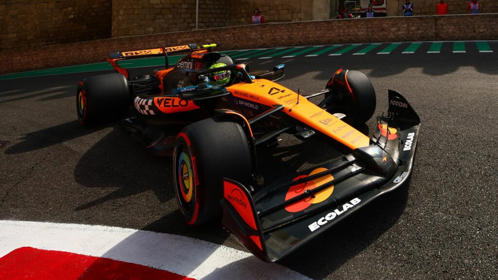 Lando Norris was quickest in a disruptive first practice at the Azerbaijan Grand Prix as championship leader Oscar Piastri suffered an early power unit scare.