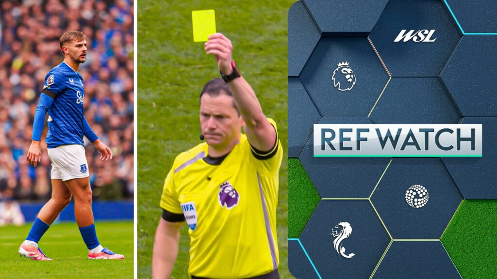 Jay Bothroyd and Dermot Gallagher react to Kiernan Dewsbury-Hall’s booking in the Merseyside derby as he took a quick free-kick and was cautioned by referee Darren England.