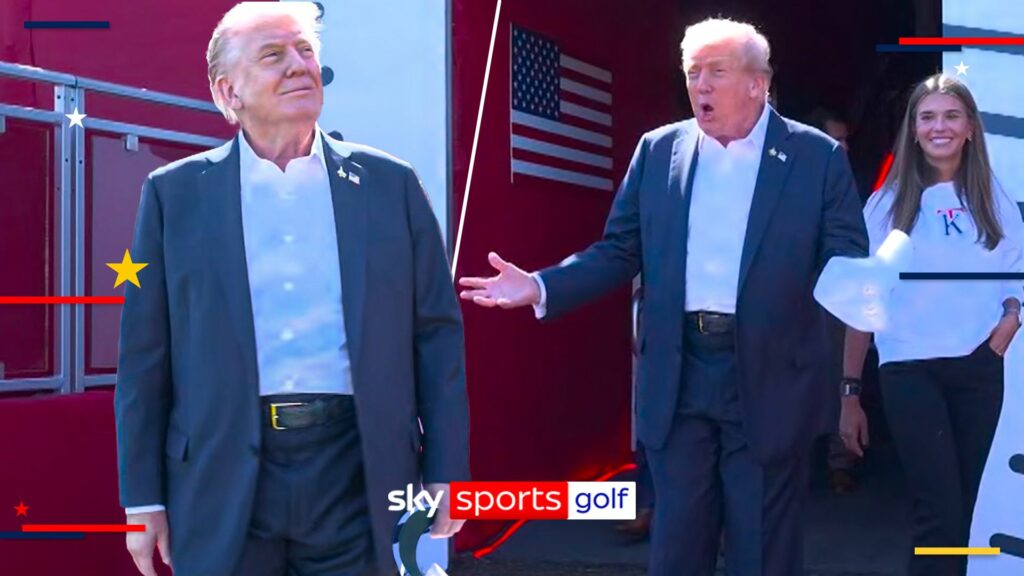 President Trump arrives at Ryder Cup… and walks Dechambeau to first tee!