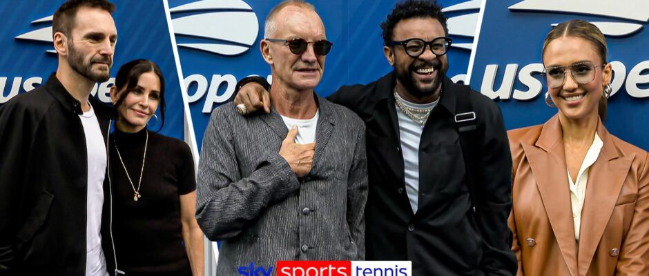 Courteney Cox, Sting, Shaggy, Jessica Alba and more celebrities enter Flushing Meadows to watch the US Open final between Jannik Sinner and Carlos Alcaraz.