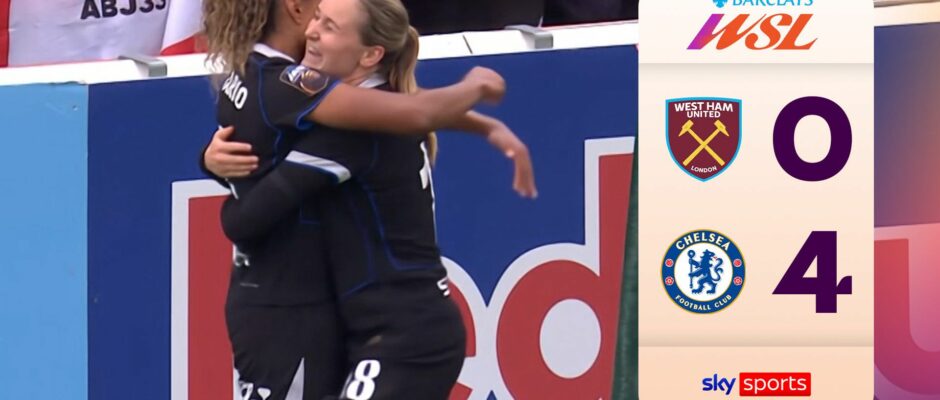 Highlights of the Women’s Super League match between West Ham and Chelsea.