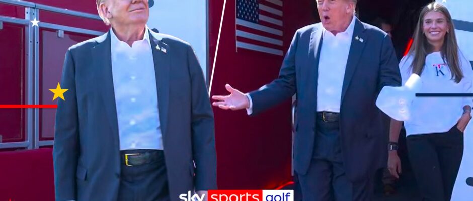 President Trump arrived at the Ryder Cup ahead of the fourball session and received a warm welcome from the US crowd.