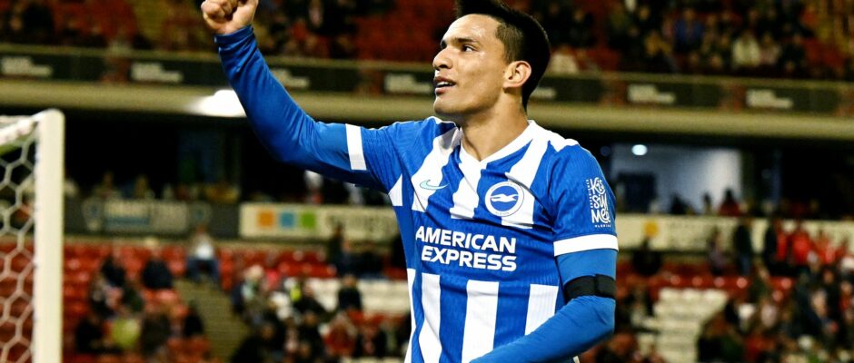 Diego Gomez scored four goals, including a stunning first-half hat-trick, as Brighton cruised into the Carabao Cup fourth round with a 6-0 win at Barnsley.