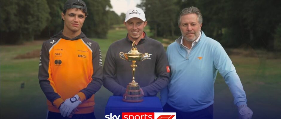 McLaren’s Zak Brown and Lando Norris engaged in a game of golf, with Matt Fitzpatrick on hand to provide advice ahead of the upcoming Ryder Cup.