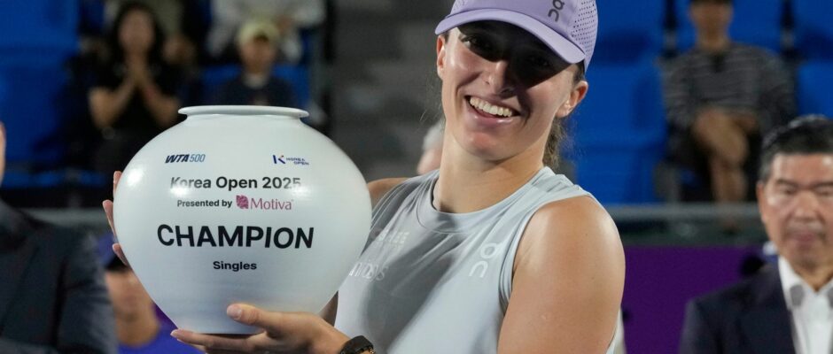 Iga Swiatek recovered from a first-set thrashing to complete a comeback victory over Ekaterina Alexandrova and win the Korea Open.