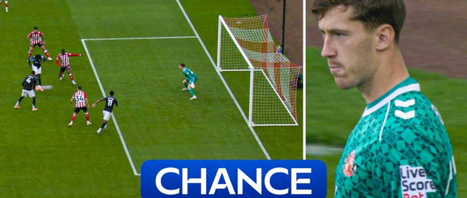 Evann Guessand fires straight at the Sunderland goalkeeper from close range!