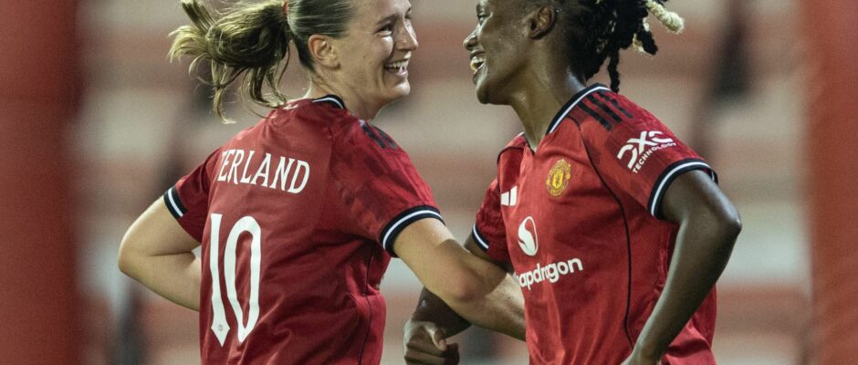 Manchester United advanced to the Women’s Champions League league phase after delivering a huge 3-0 victory over Brann at Leigh Sports Village with Elisabeth Terland scoring all three goals.