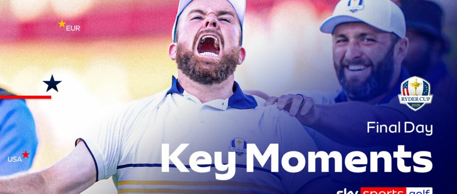 Highlights of the key moments from the final day of the Ryder Cup from Bethpage as Europe hold on to clinch the trophy.