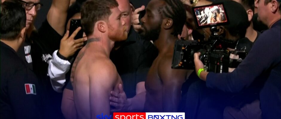 Canelo Alvarez and Terence Crawford both weigh in at 167.5 pounds on the eve of their undisputed super middleweight championship showdown.