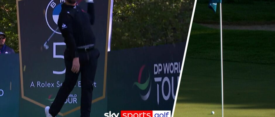 Jon Rahm produced a bizarre birdie at the par-three fifth during his second round at the BMW PGA Championship, despite a one-handed finish to his tee shot.