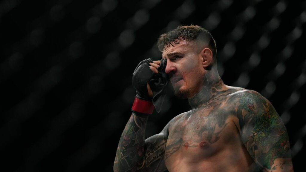 Tom Aspinall “still can’t see anything” out of his right eye after his UFC heavyweight title fight against Ciryl Gane, his father says.