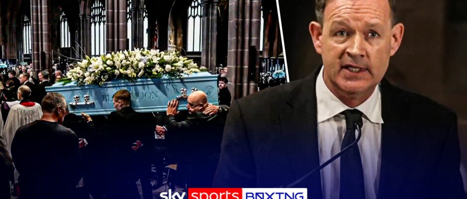 Boxing commentator Adam delivers a heartfelt eulogy at Ricky Hatton’s funeral.