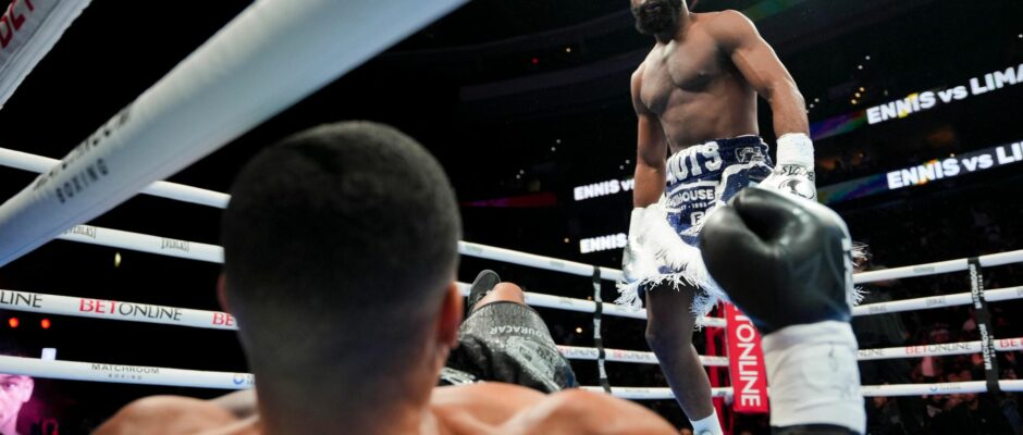 Jaron Ennis took out Uisma Lima in less than two minutes to win his first fight at super-welterweight.