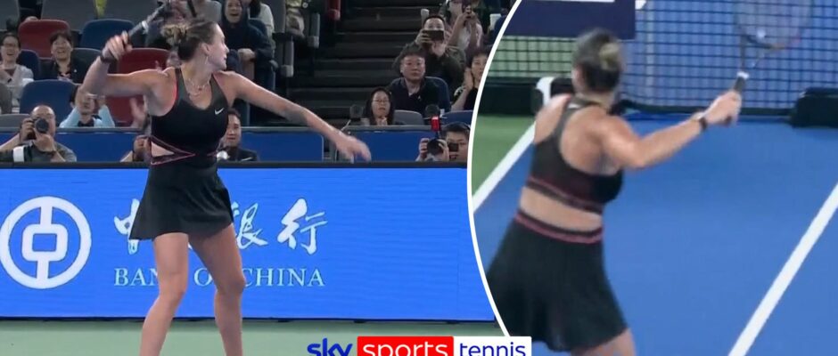 Aryna Sabalenka had to apologise to a ball boy after almost hitting him when she launched her racket in anger after a losing a point