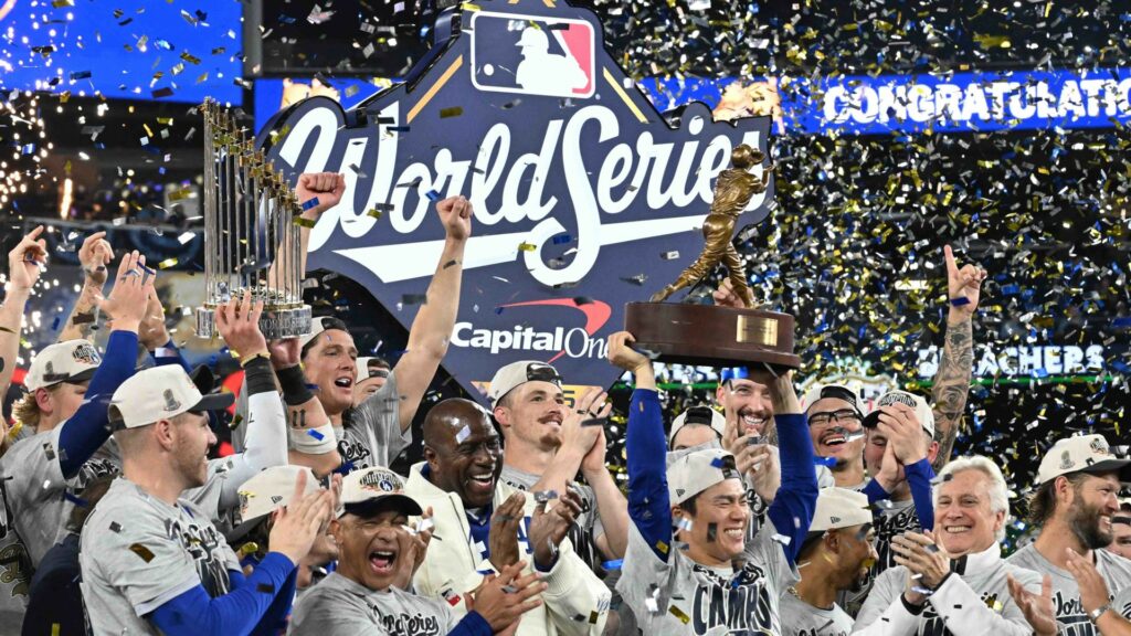The Los Angeles Dodgers rallied to beat the Toronto Blue Jays 5-4 in the extra innings of a decisive seventh game of the World Series to become Major League Baseball’s first repeat champion in 25 years.