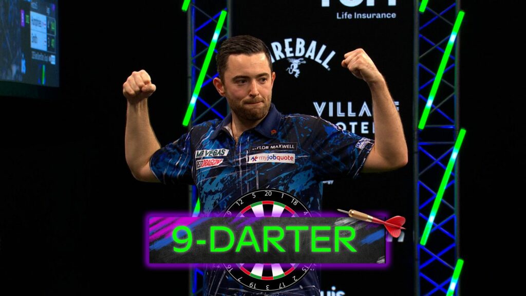 Luke Humphries hits a nine-darter to win his Grand Slam of Darts group stage game against Michael Smith.