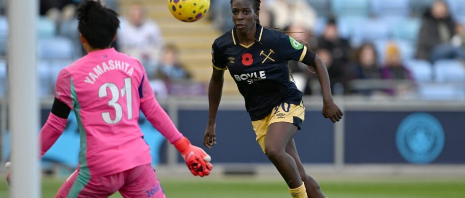 Aoba Fujino’s first-half goal was enough for Manchester City to edge past West Ham and keep the pressure on Chelsea in the WSL title race.