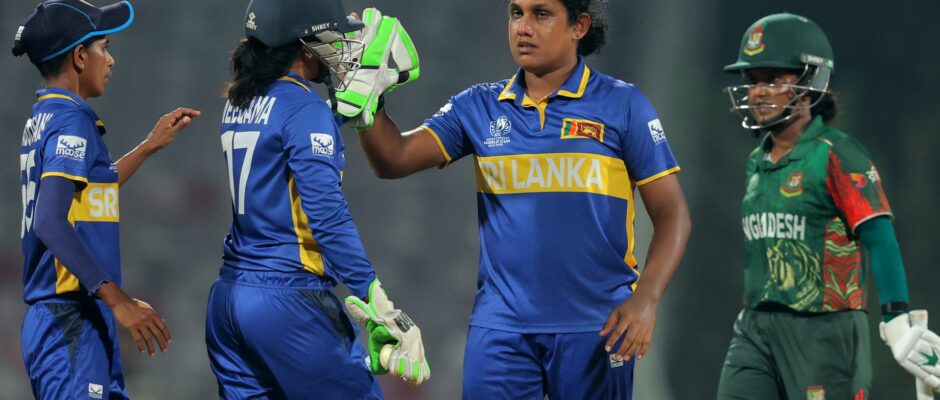 Sri Lanka took four wickets in four balls in the final over as a remarkable turnaround clinched a seven-run victory that kept their World Cup semi-final hopes alive at the expense of Bangladesh.