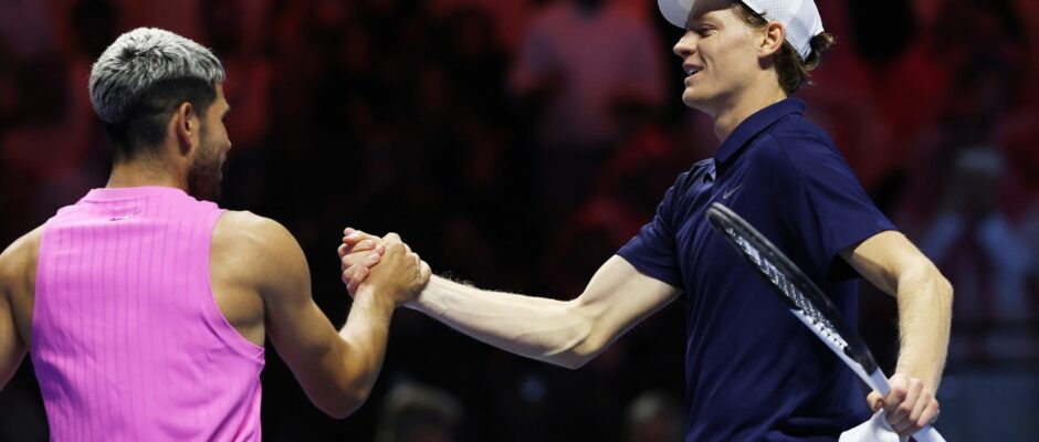Jannik Sinner blasted his way past world No 1 Carlos Alcaraz to claim victory in the final of the lucrative Six Kings Slam in Saudi Arabia.