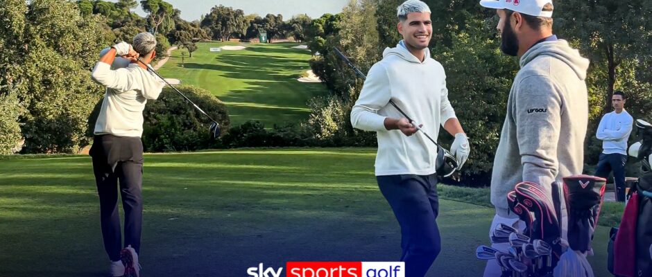 Carlos Alcaraz showed off his tee shot to Jon Rahm at the Spanish Open Pro-Am.
